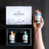 Welcome to the world of Satoshi! Die Satoshi Minibar, der Barschrank zum Mitnehmen, lädt dazu ein drei 50 ml Destillate zu verkosten. Probiere den frischen, feingliedrigen und intensivaromatischen Blutorangengeist. Trau Dich an den kräftigen, öligen und an einen Urlaub im tiefen Wald erinnernden Wacholdergeist. Das dritte Destillat ist unser London Dry Gin. Er verbindet die anderen zwei unterschiedlichen Aromenwelten mit sieben weiteren Zutaten zu einer verspielt-fruchtigen und komplex-würzigen Aromenpalette. Beide Geiste sind wunderbar in Cocktails einsetzbar und wir empfehlen sie auch uneingeschränkt zum Purgenuss. Leert die Minibar!